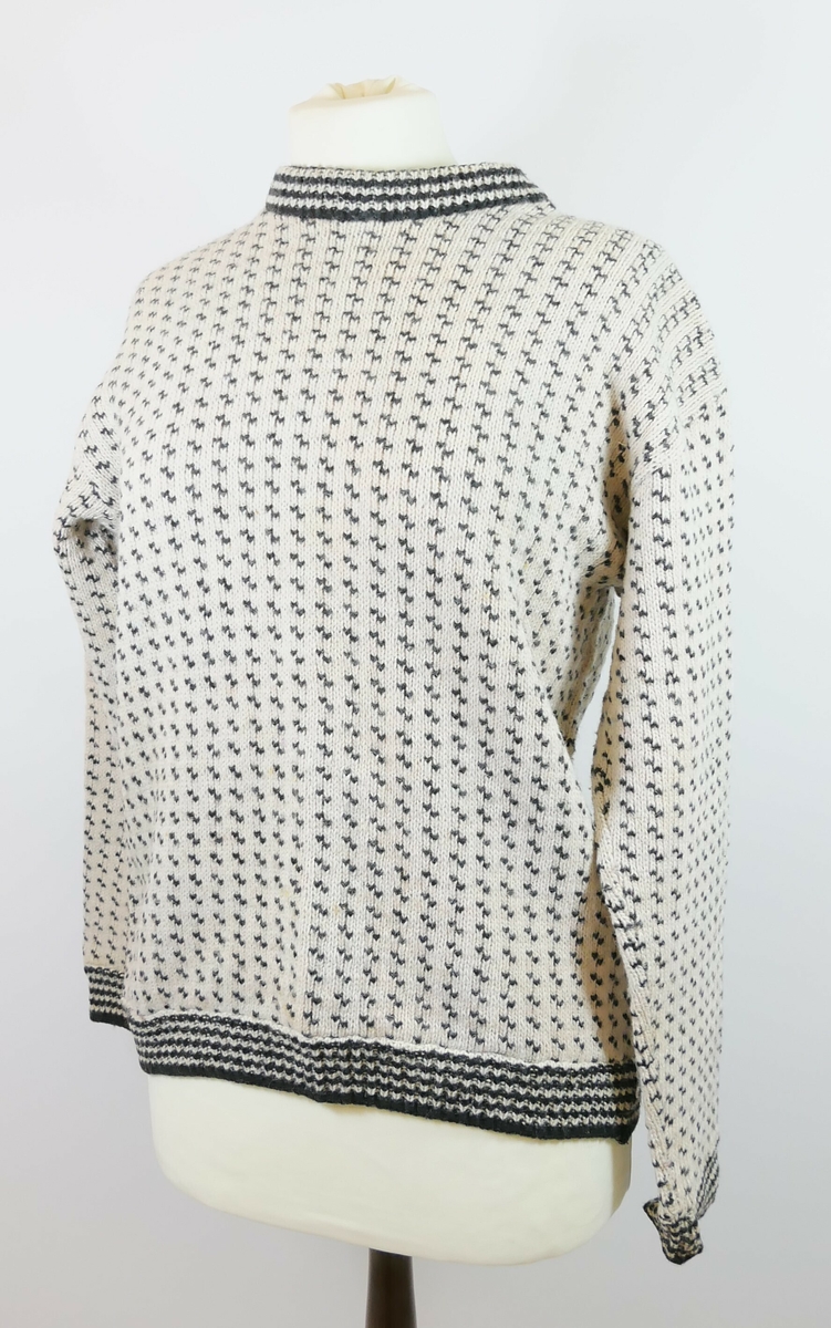 Nordlys islender strikket genser for dame og herre, hvit og sort med glidelås.